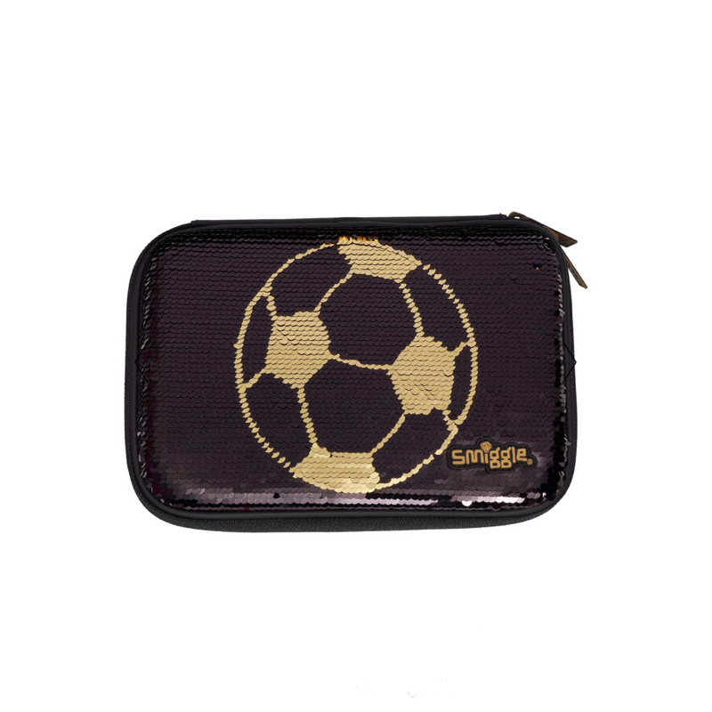 Smiggle Football Pencil Case Hard Shell Silver Black Silver Football silver soccer Amazon Stationery Office Supplies Very well made.