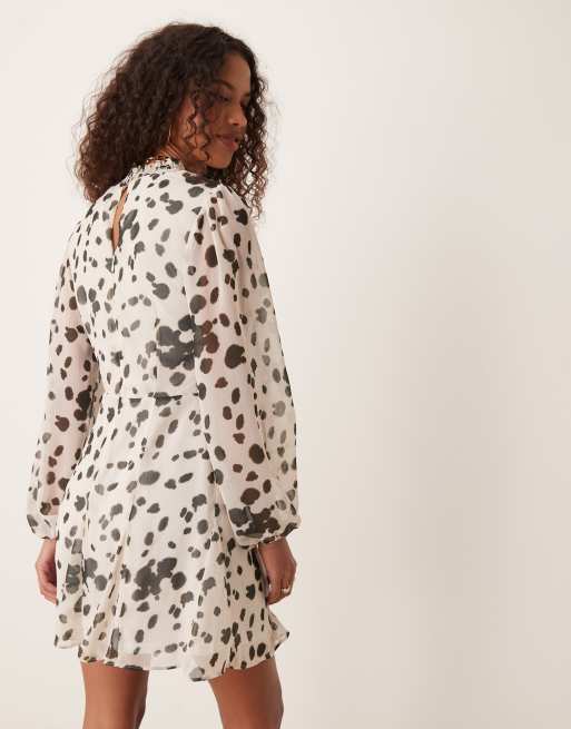 Miss Selfridge chiffon angel sleeve mini dress in smudge polka dot ASOS Very well made.