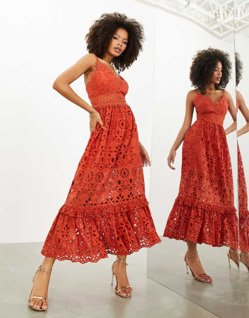 ASOS EDITION broderie waisted cami midi dress in terracotta Very well made.
